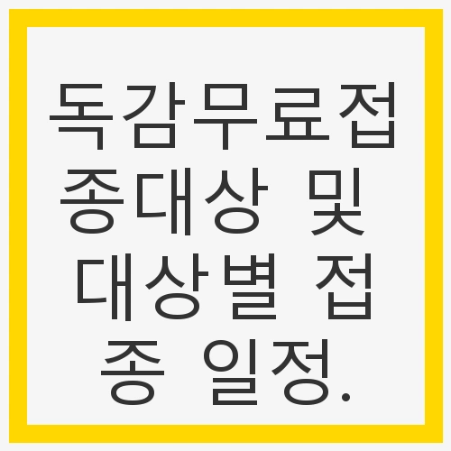 2024년도 독감 무료접종은 특정 대상자에게 제공됩니다. 이에 따라, 무료접종의 대상과 그에 따른 접종 기간을 아래와 같이 정리해보았습니다. 이 정보는 특히 중요하니, 미리 확인하시고 준비물도 확인하시기 바랍니다.